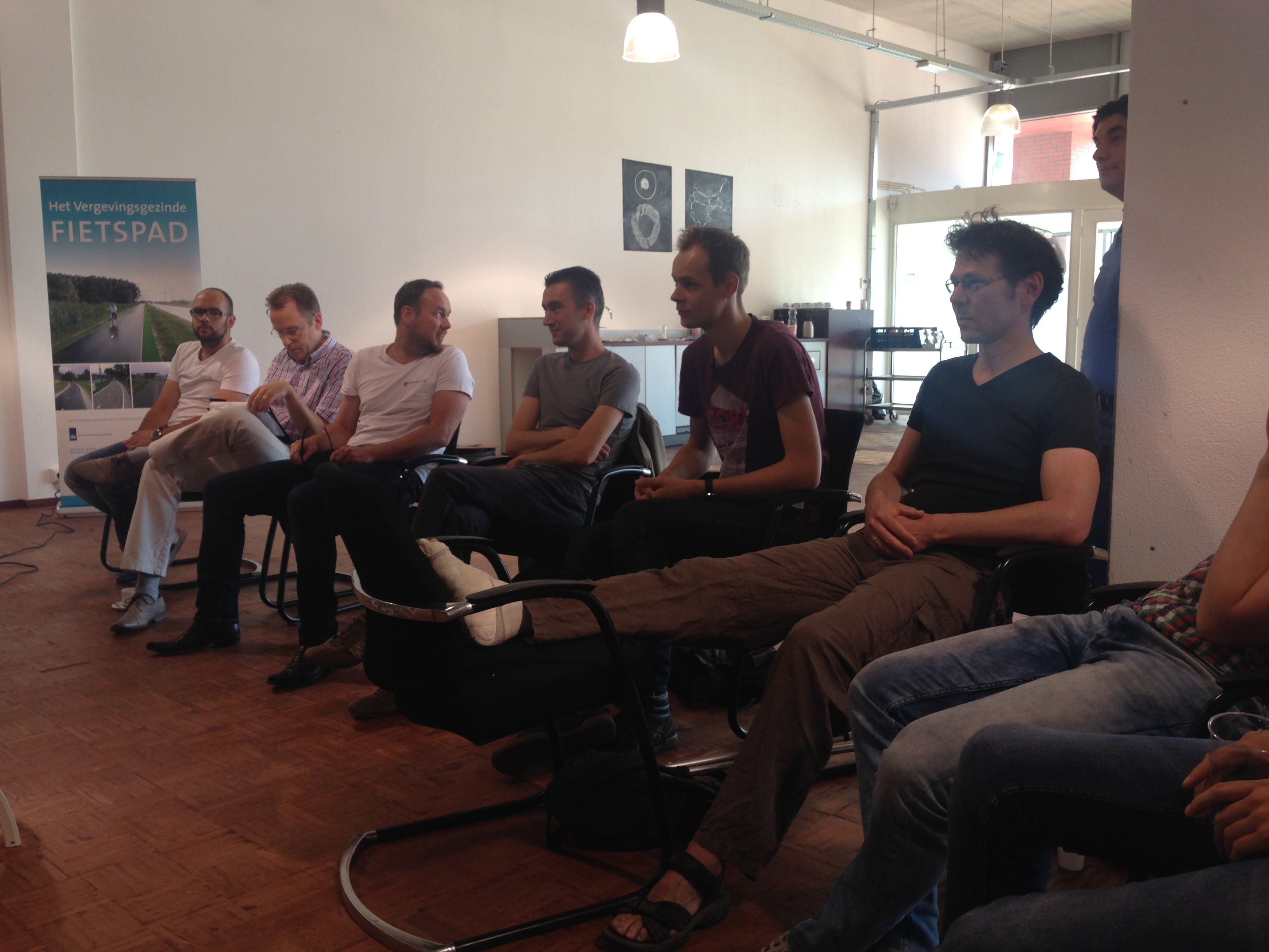Eén van die partijen die ons benaderd heeft is Zwolle Kampen Netwerkstad en Zwolle Fietsstad 2014. Deze partijen willen onderzoeken of in Zwolle een fiestinnovatie centrum zou kunnen worden ontwikkeld, wat dat zou moeten zijn en met wie. Daarom vond op woensdag 1 juli een brainstorm plaats op Lübeckplein 68. Met zo’n 20 verschillende partijen bij elkaar hebben we nagedacht of er draagvlak is voor een Fietsinnovatiecentrum in Zwolle, waarom, hoe en welke vorm dat zou kunnen krijgen. Het werd een levendige discussie en de inspiratie en ideeën vlogen over de tafel.