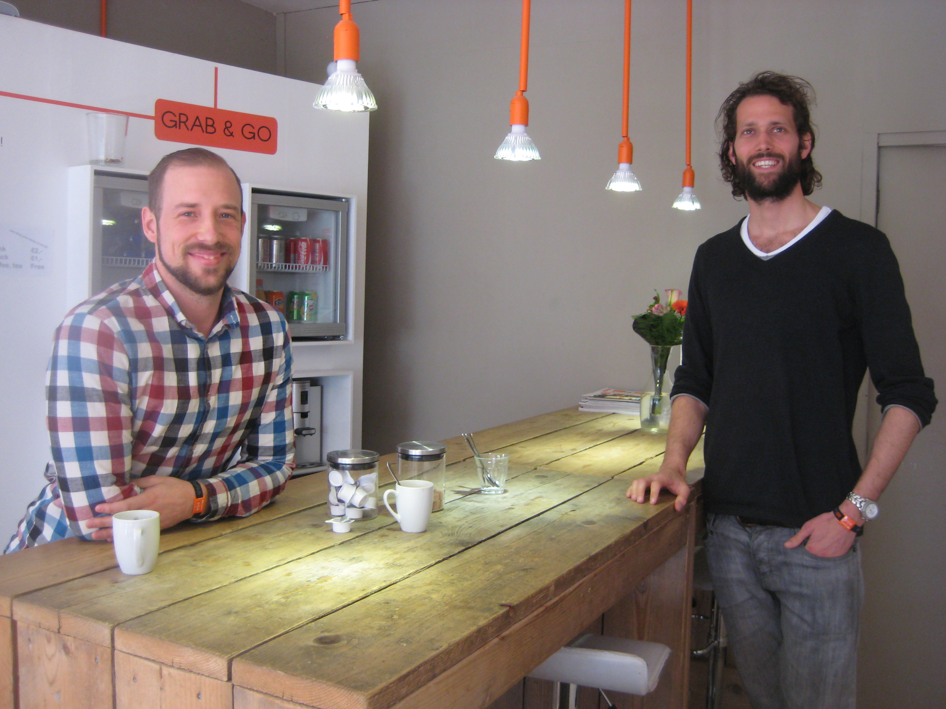 Sem en Pieter in de onmoetingsruimte van CityHub.