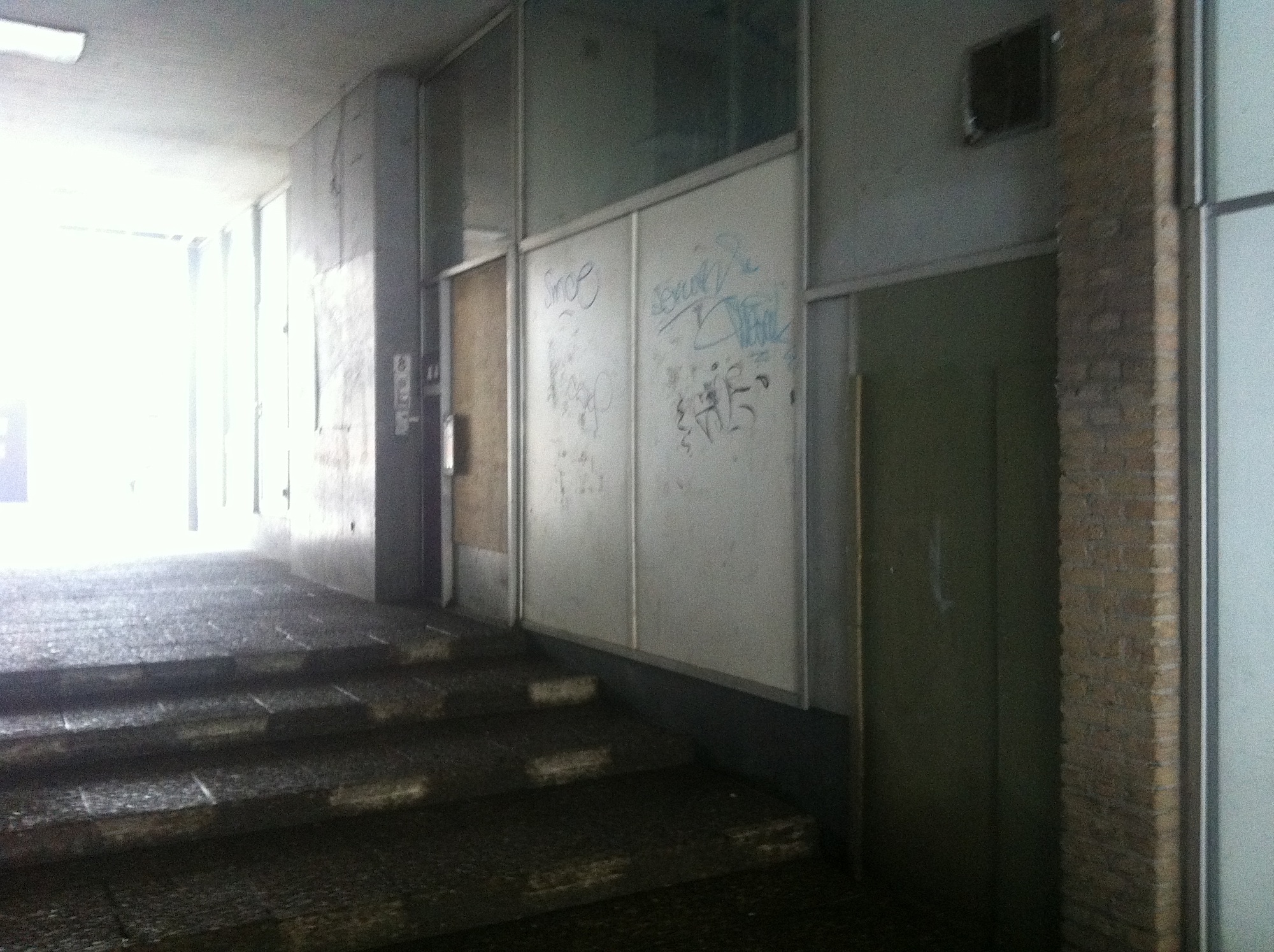 Ondertussen is het juli 2014 en tot op de dag van vandaag is er nog niets met het pand gebeurt en het vervallen uiterlijk lokt vernielingen uit. Je zou toch denken dat het nu wel eens tijd wordt om actie te ondernemen, al zou dat betekenen dat tijdelijk gebruik zou worden toegestaan. Al was het alleen maar om meer levendigheid en reuring te krijgen.