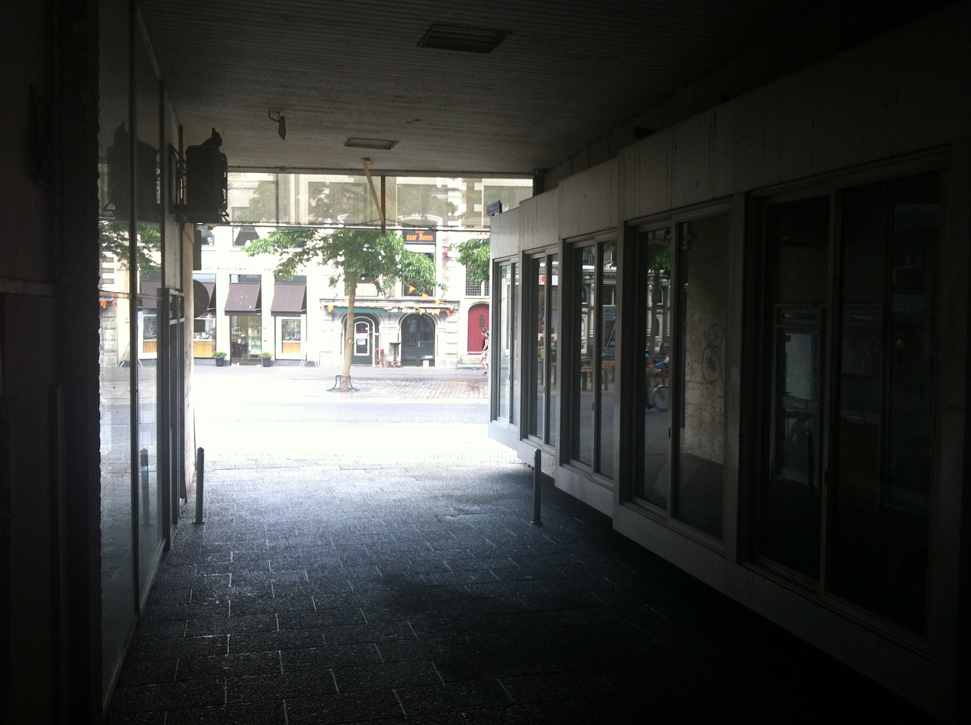 Vrijdagmiddag liep ik door de Tijlpassage in Zwolle. Deze passage verbindt de brede Melkmarkt met de Voorstraat in het hart van de oude binnenstad. Je loopt als het ware onder een pand door waar vroeger de Rabobank in was gevestigd. Regelmatig neem ik deze passage om een stuk van de Melkmarkt af te snijden.
