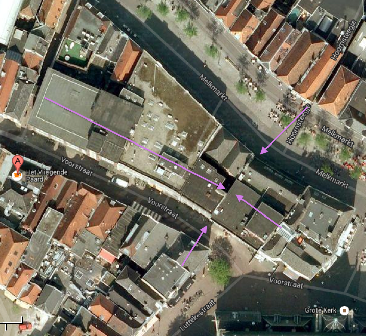 Het pand van de oude bank is heel groot (zie bijgaande google satelliet foto) en bestrijkt een groot deel van de Melkmarkt aan de ene en de Voorstraat aan de andere kant. Wat nog schrijnender is het staat al heel lang leeg en is lelijk aan de buitenkant door ingegooide ramen. Deze worden vervolgens dichtgespijkerd met hout.