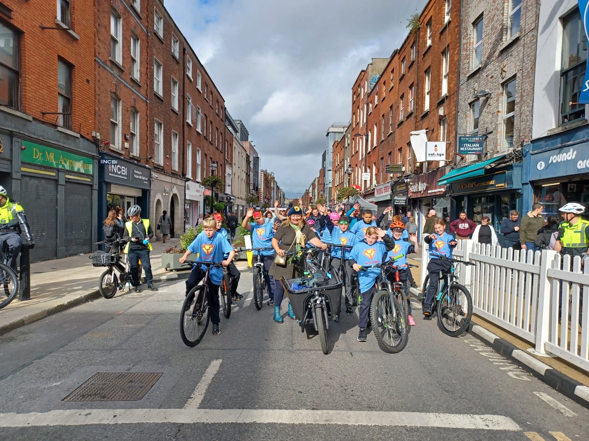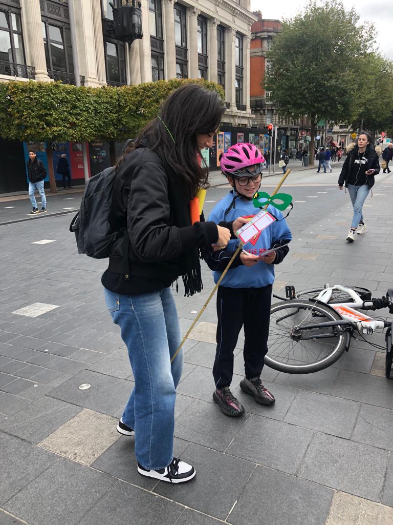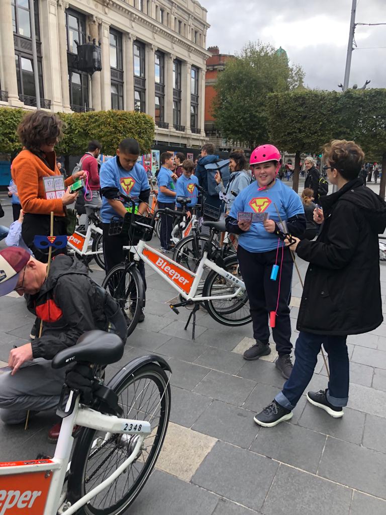 Omdat we ons goed wilden voorbereiden zijn we een paar dagen eerder naar Dublin afgereisd. Mede omdat we zelf wilden ervaren hoe het is om aan de linkerkant van de weg te fietsen in een hele andere fiets-infrastructuur te zijn dan zoals we die in Nederland kennen. Met de fantastische hulp en de onvoorwaardelijke inzet van fietsburgemeester, Donna Cooney, konden wij op 6 oktober een succesvolle fieldtrip uitvoeren onder leiding van de kinderen door Dublin. Wat een rit was dat!
